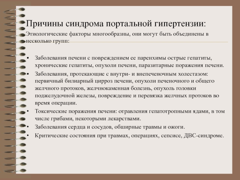 Слайд 5Причины синдрома портальной гипертензии: