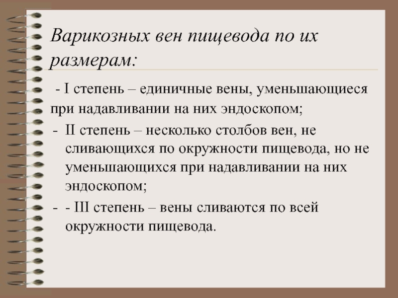 Слайд 12Варикозных вен пищевода по их размерам: