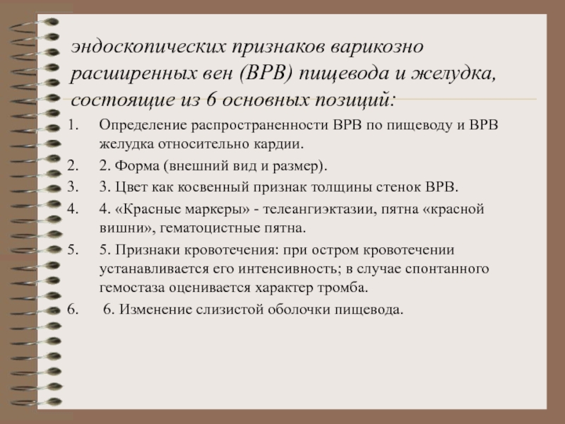 Слайд 14эндоскопических признаков варикозно расширенных вен (ВРВ) пищевода и желудка, состоящие