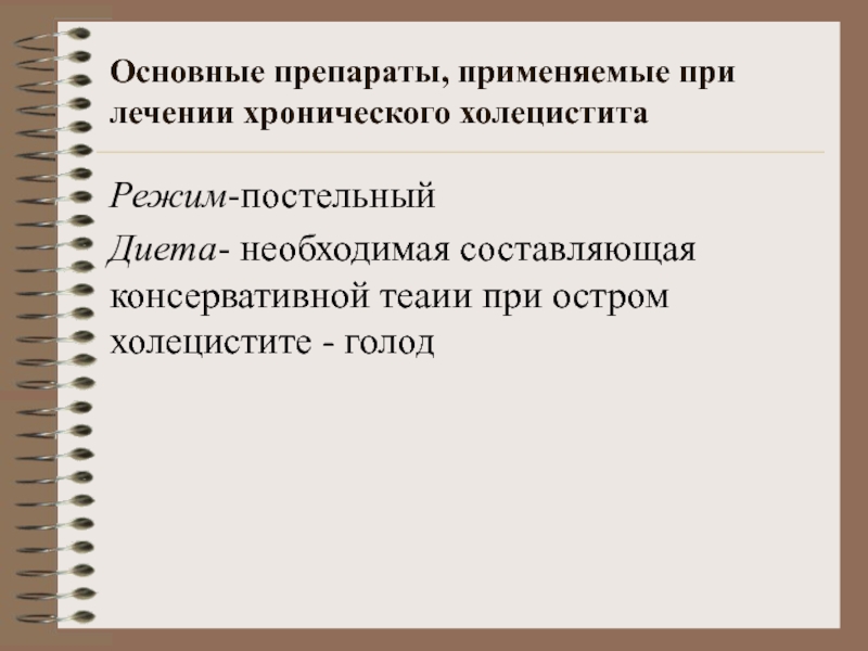 Слайд 19Основные препараты, применяемые при лечении хронического холецистита