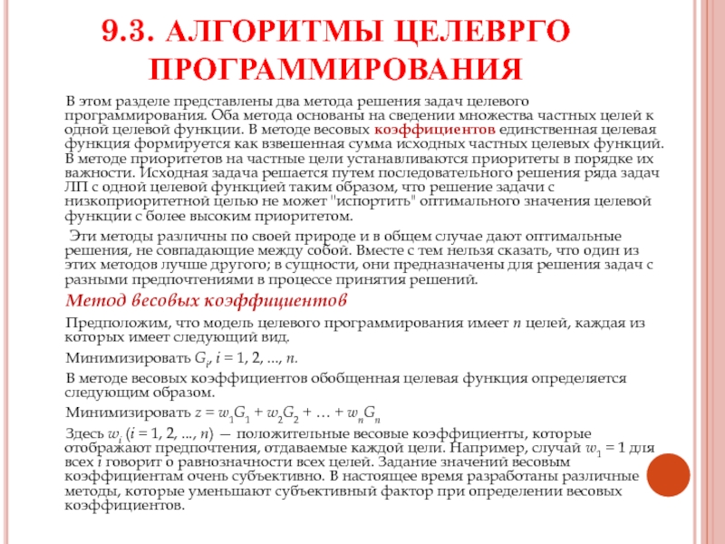 Слайд 69.3. АЛГОРИТМЫ ЦЕЛЕВРГО ПРОГРАММИРОВАНИЯ
