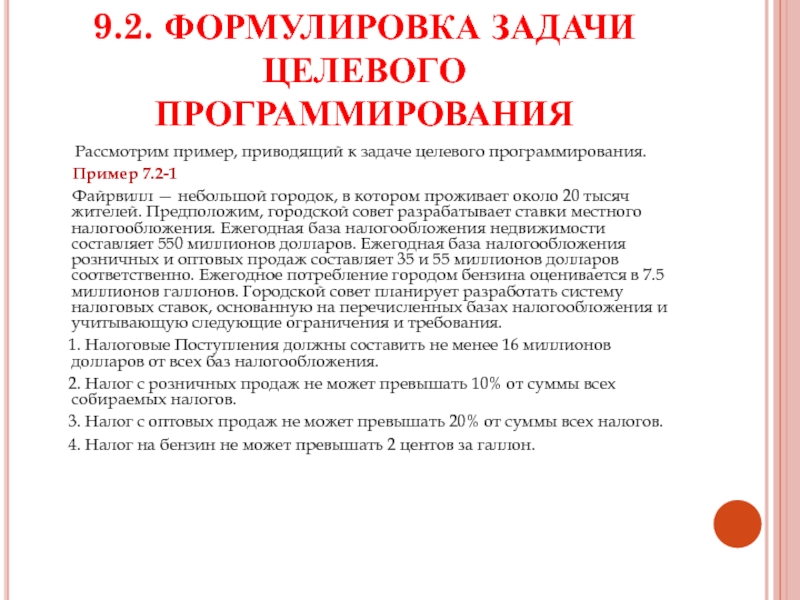 Слайд 39.2. ФОРМУЛИРОВКА ЗАДАЧИ ЦЕЛЕВОГО ПРОГРАММИРОВАНИЯ