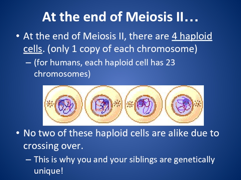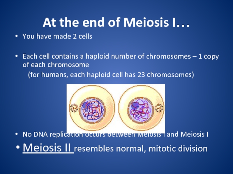 Mitosis – one copy of the DNA is distributed into each of its daughter cells