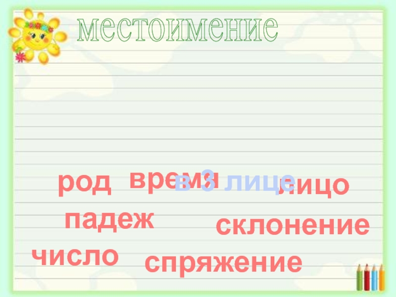 местоимениепадежродчислосклонениеспряжениевремялицов 3 лице