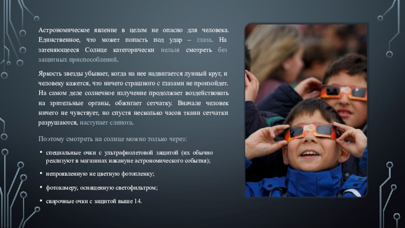 может попасть под удар – глаза. На затеняющееся Солнце категорически