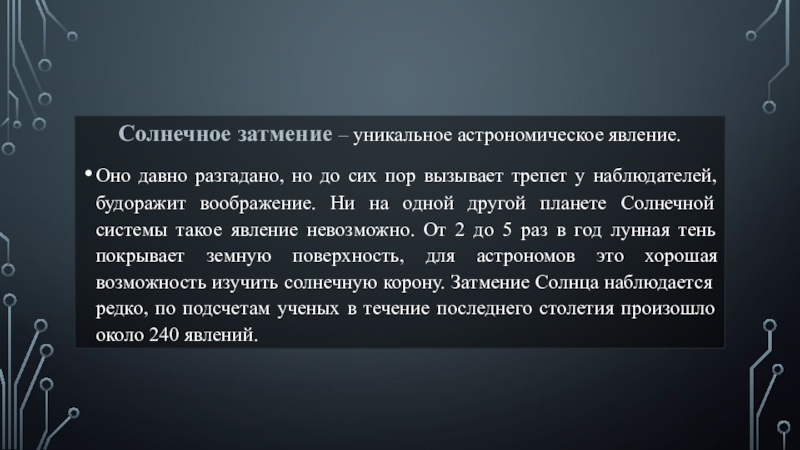 Яркость звезды убывает, когда на нее надвигается лунный круг, и человеку кажется, что ничего страшного с глазами не произойдет. На самом деле солнечное излучение продолжает воздействовать на зрительные органы, обжигает сетчатку. Вначале человек ничего не чувствует, но спустя несколько часов ткани сетчатки разрушаются, наступает слепота.