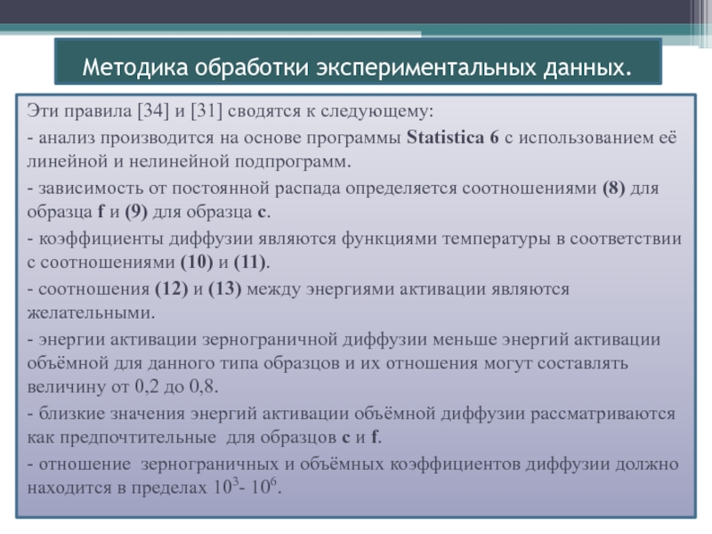 3. Методика определения энергий активации и предэкпоненциальных членов коэффициентов диффузии.