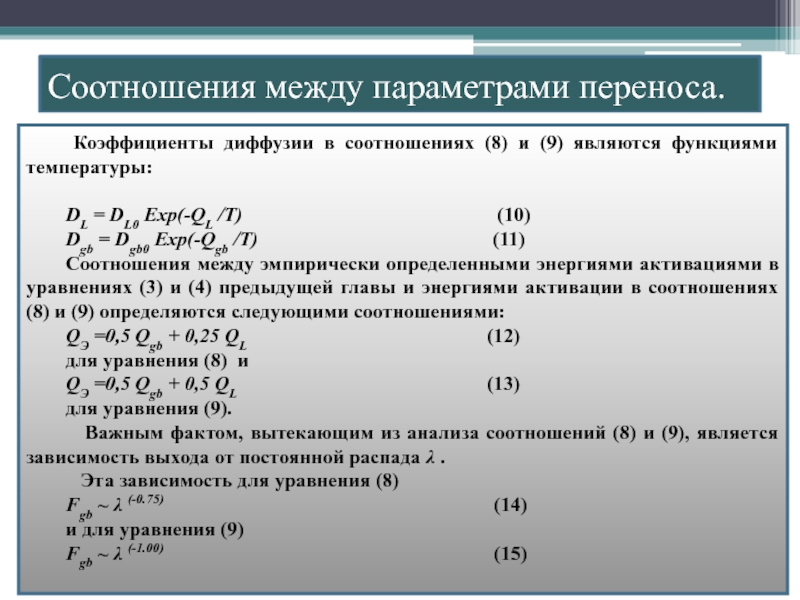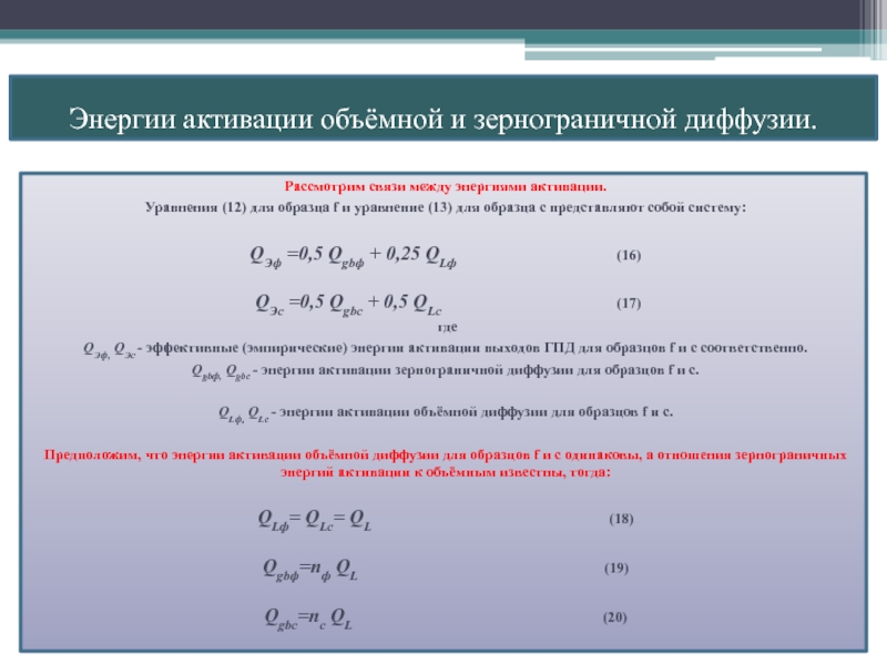 переноса и необходимость их введения при решении задачи по восстановлению параметров по экспериментальным данным. Представить методику определения энергий активации и предэкпоненциальных членов коэффициентов диффузииПлан.