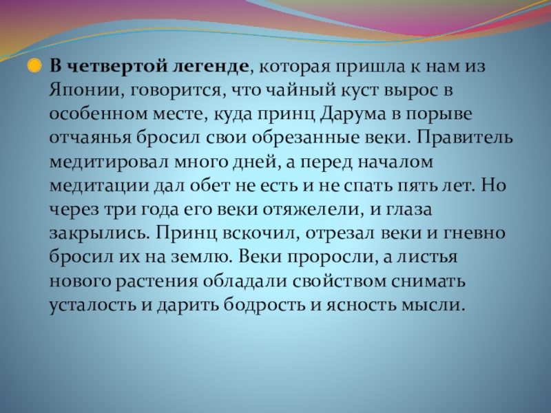 Слайд 5В четвертой легенде, которая пришла к нам из Японии, говорится,