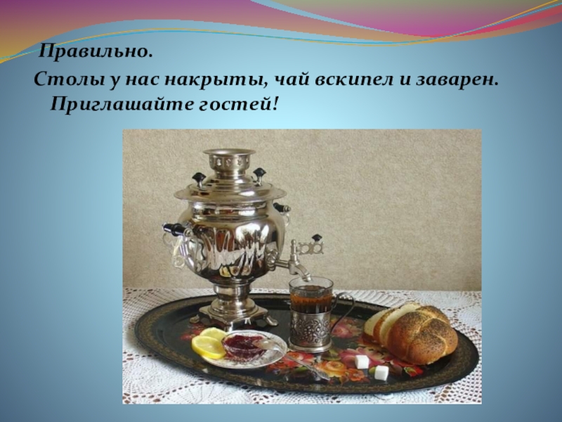 Столы у нас накрыты, чай вскипел и заварен. Приглашайте