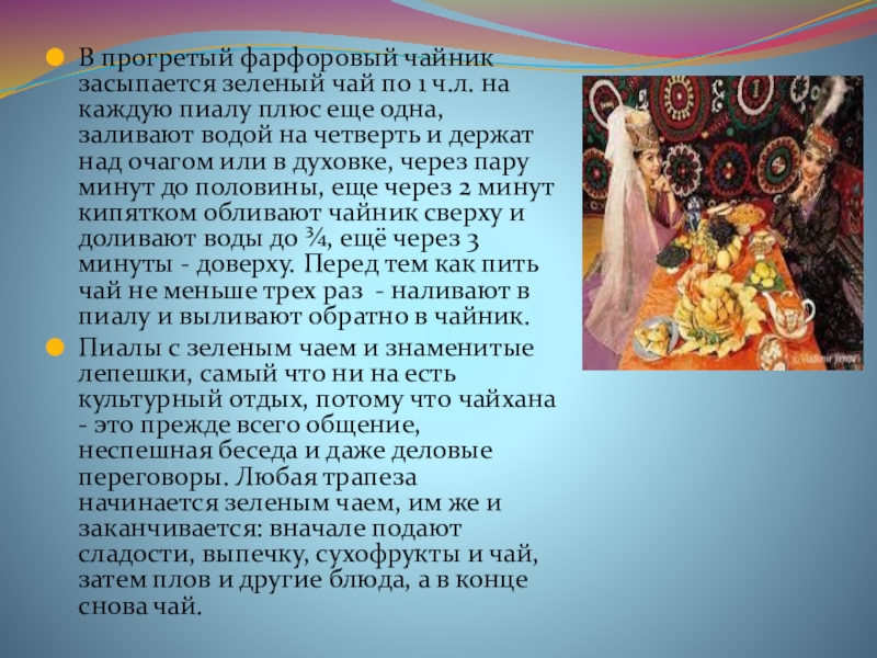 чая в пиалу ему наливает хозяин. Обычно на треть трети