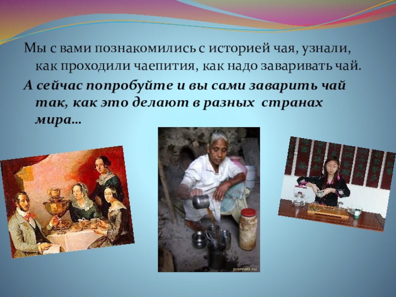 Слайд 34Мы с вами познакомились с историей чая, узнали, как проходили