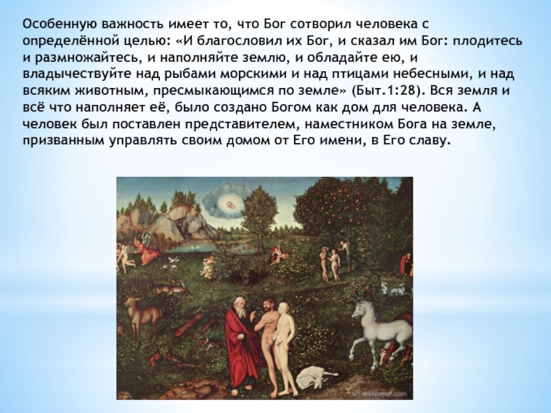 Слайд 6Особенную важность имеет то, что Бог сотворил человека с определённой