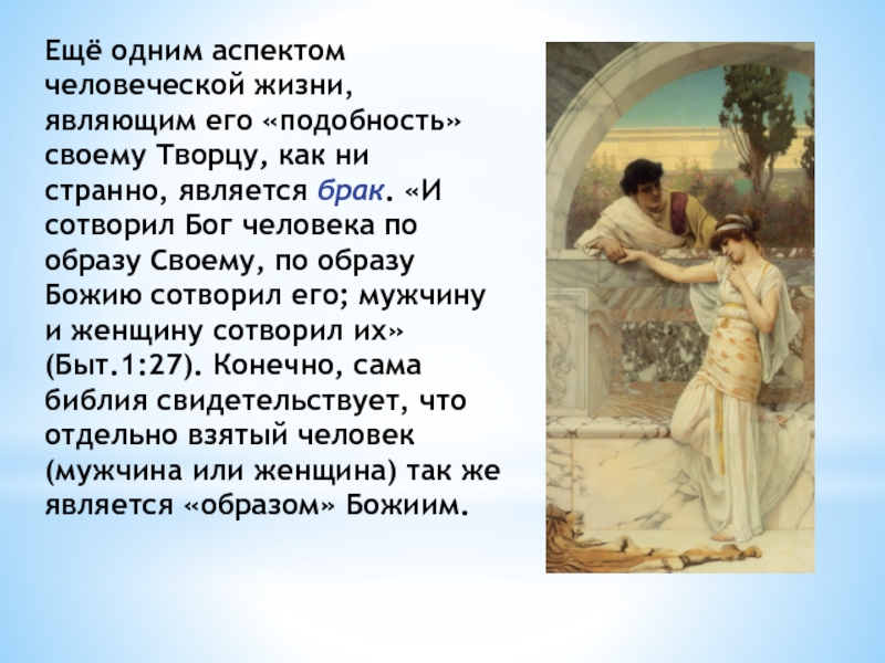 своему Творцу, как ни странно, является брак. «И сотворил Бог