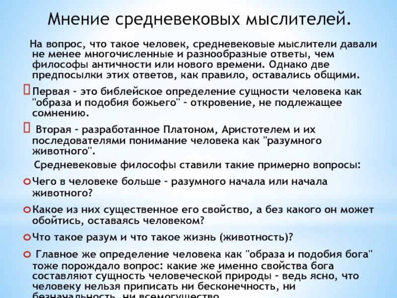 На вопрос, что такое человек, средневековые мыслители
