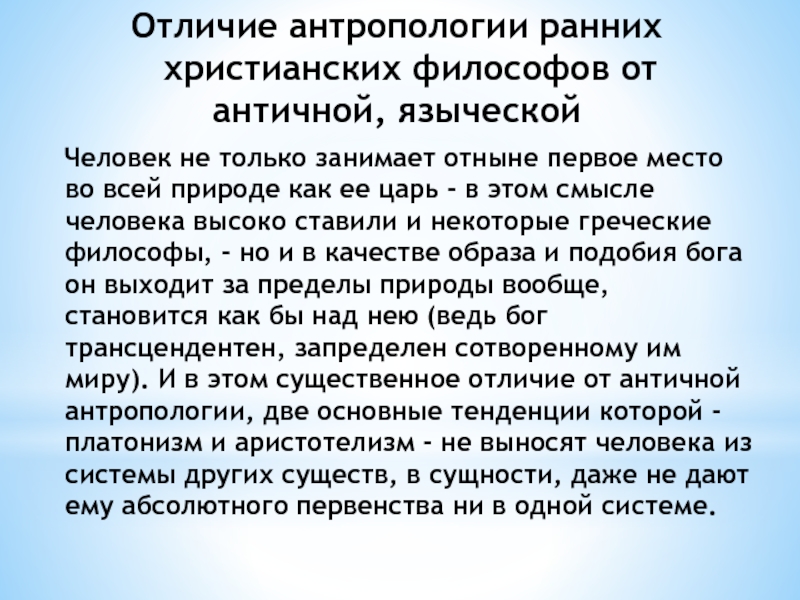 Отличие антропологии ранних христианских философов от