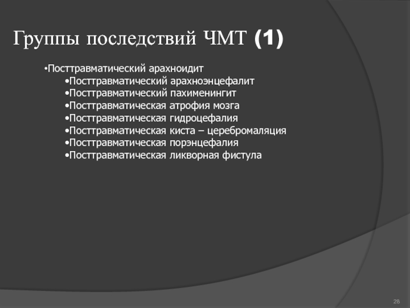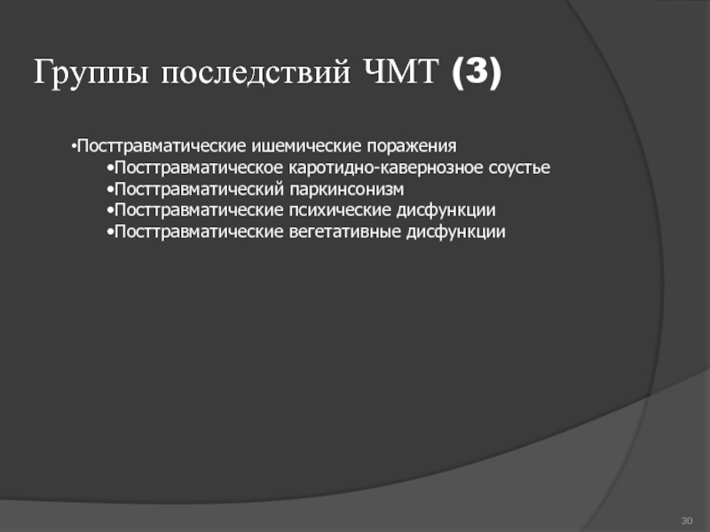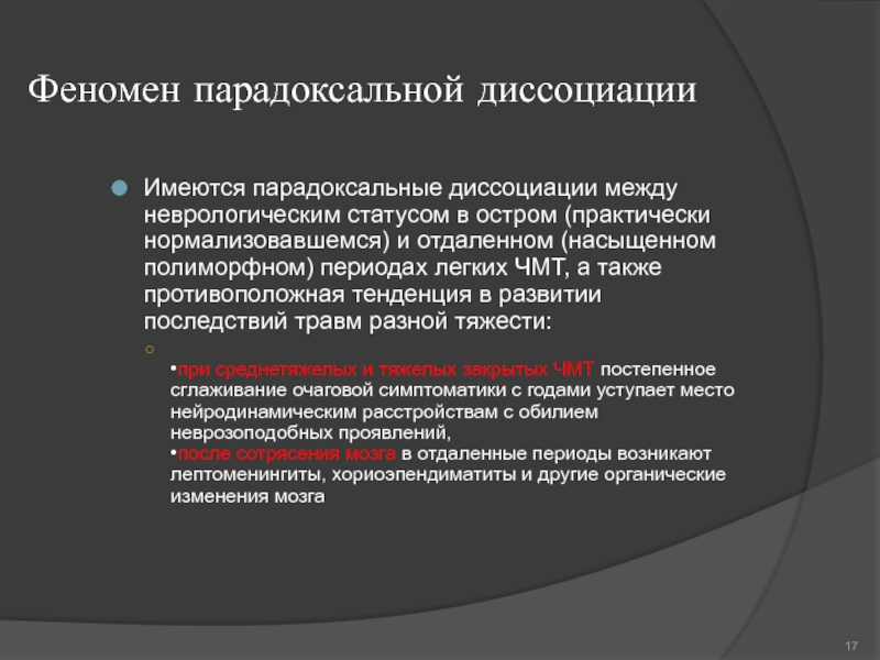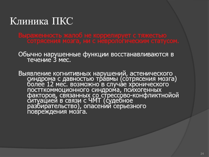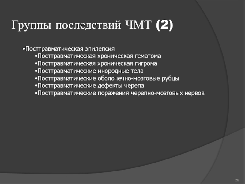 развитие симптомов в течение нескольких ближайших дней, недель или месяцев после ЧМТ;