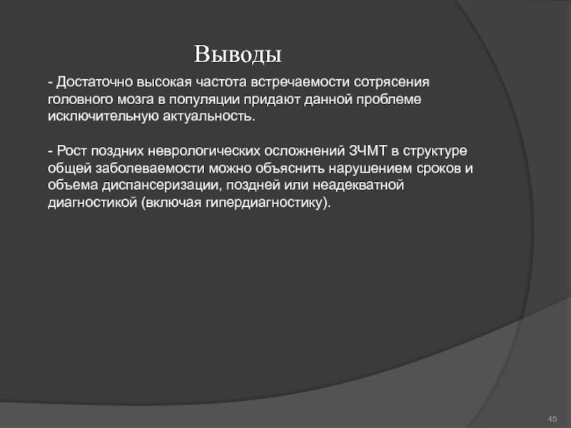 поздних неврологических осложнений ЗЧМТ в структуре общей заболеваемости можно объяснить нарушением сроков и объема диспансеризации, поздней или неадекватной диагностикой (включая гипердиагностику).