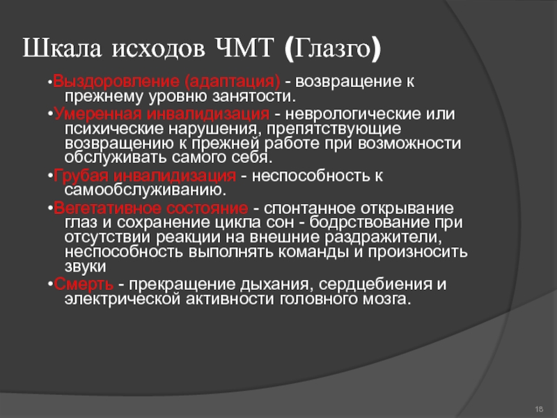 тяжести и тяжёлую ЧМТ. Для определения степени тяжести используют шкалу комы