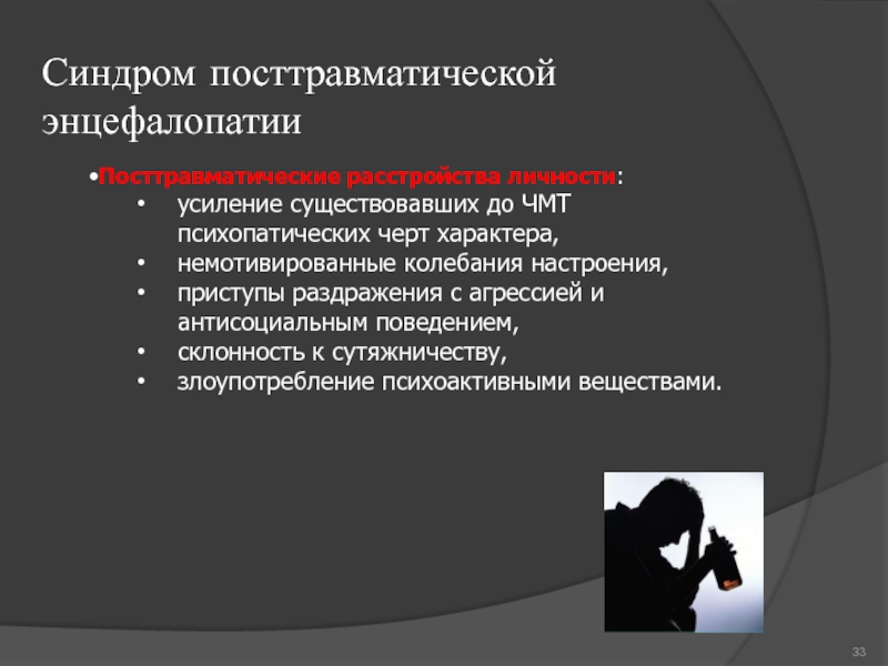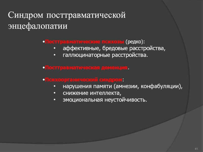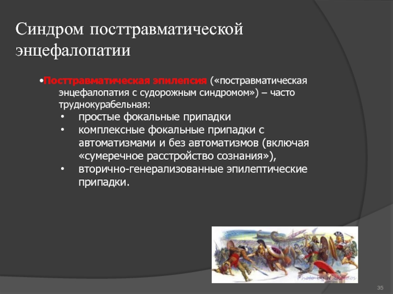 •Посттравматическая эпилепсия («постравматическая энцефалопатия с судорожным синдромом») –