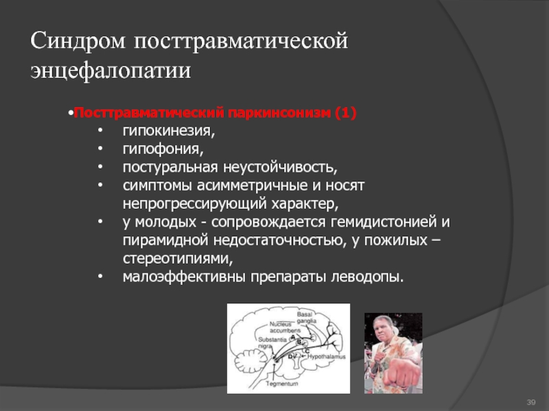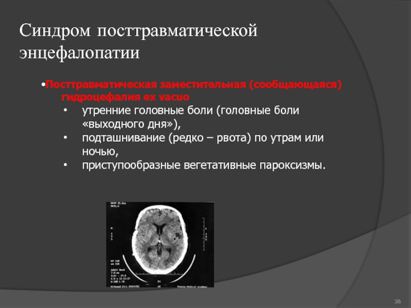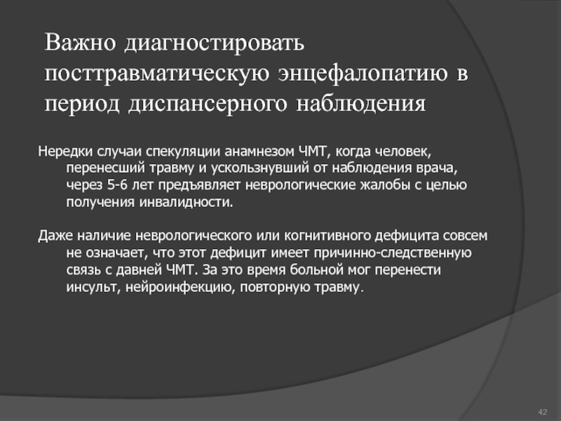 Слайд 42Важно диагностировать посттравматическую энцефалопатию в период диспансерного наблюдения