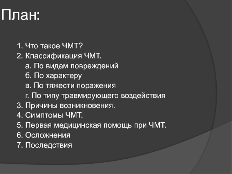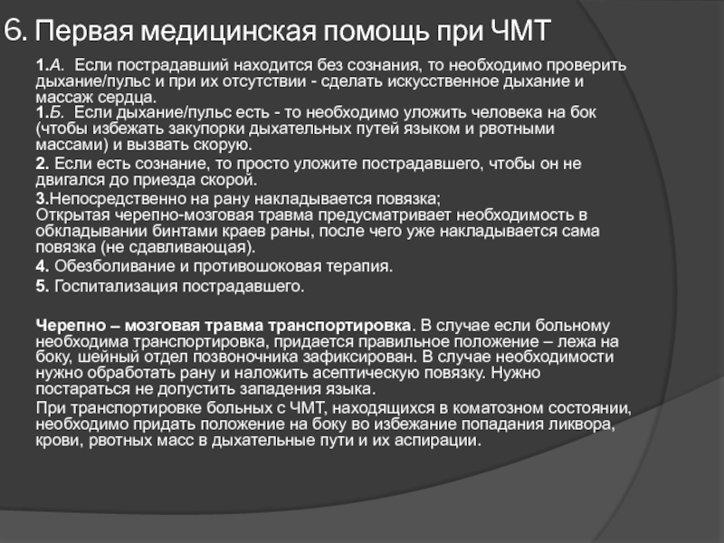 Слайд 126. Первая медицинская помощь при ЧМТ