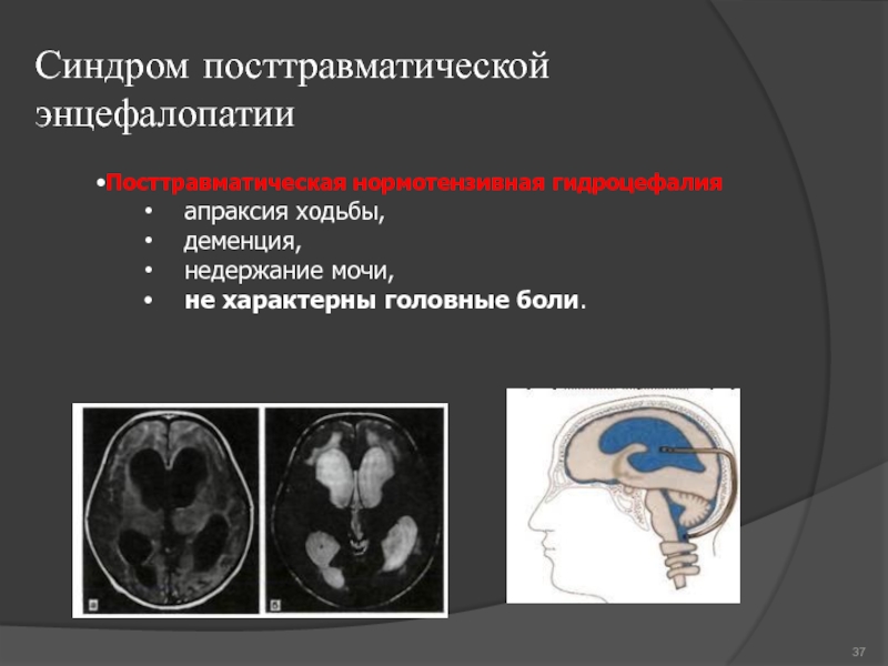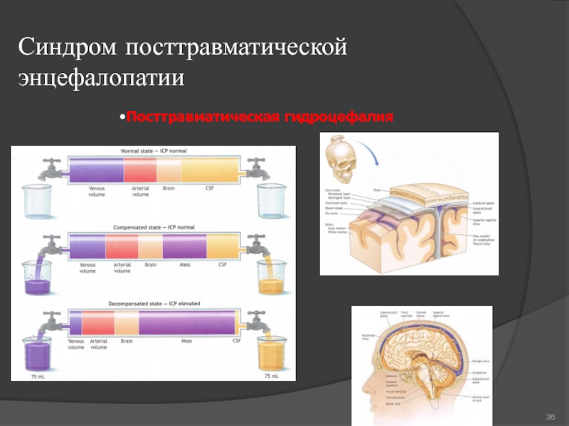 •Посттравматическая заместительная (сообщающаяся) гидроцефалия ex vacuo
