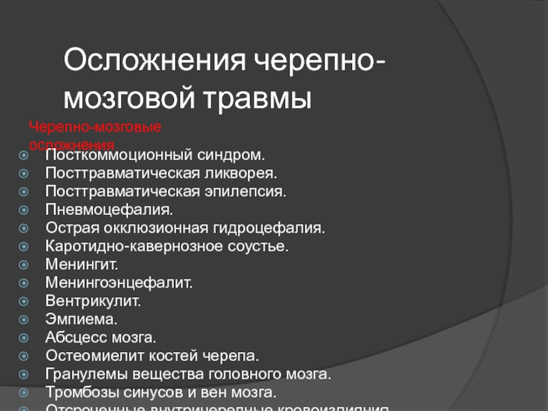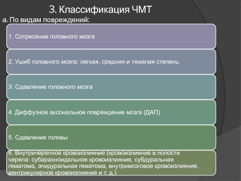 Черепно – мозговая травма (ЧМТ) – это комплекс различных видов