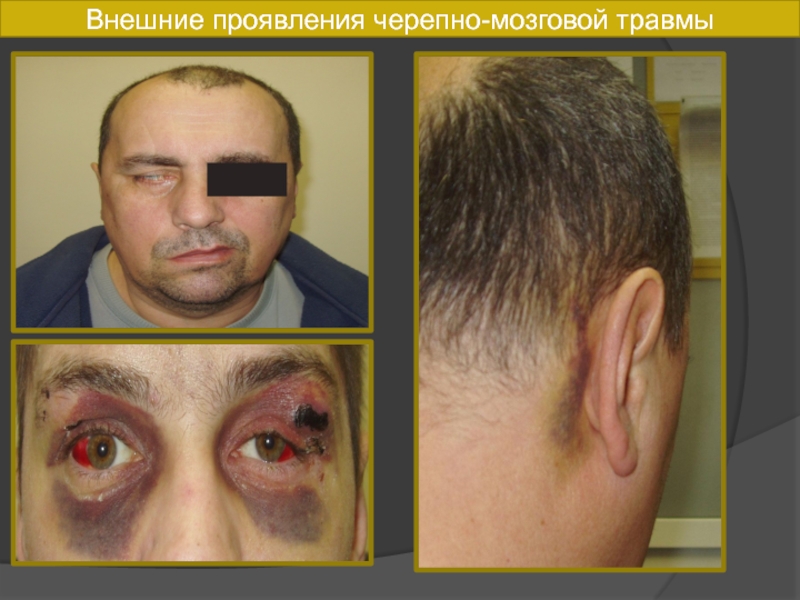 Слайд 11Внешние проявления черепно-мозговой травмы