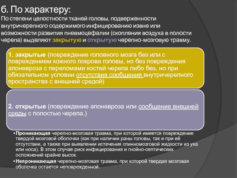 черепа) выделяют закрытую и открытую черепно-мозговую травму.