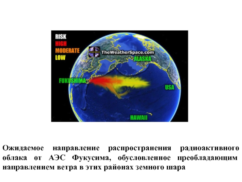 Слайд 19Ожидаемое направление распространения радиоактивного облака от АЭС Фукусима, обусловленное преобладающим