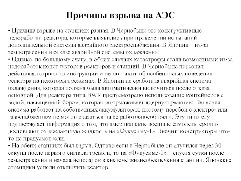 Слайд 10Причины взрыва на АЭС