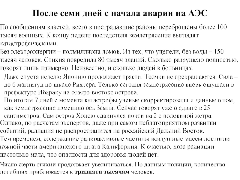 Слайд 25После семи дней с начала аварии на АЭС