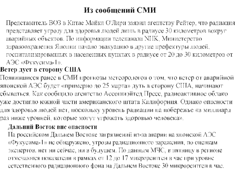 Чернобыльская АЭС, СССР, 1986годАЭС Фукусима1, Япония, 2011годПриродные ЧС и аварии на АЭСЭкспресс-информацияЭкспресс-лекция