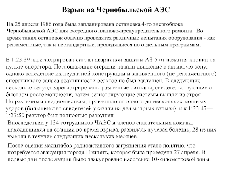 Слайд 7Взрыв на Чернобыльской АЭС