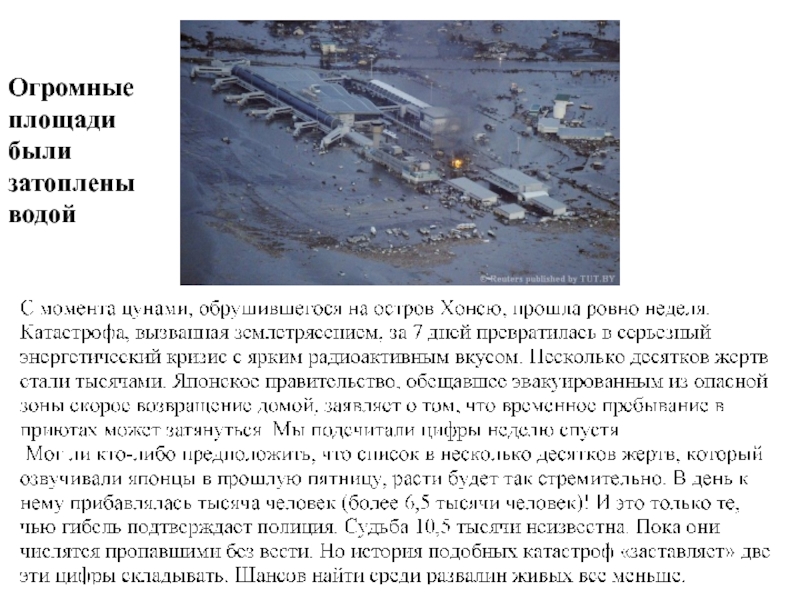 Слайд 22Огромные площади были затоплены водой