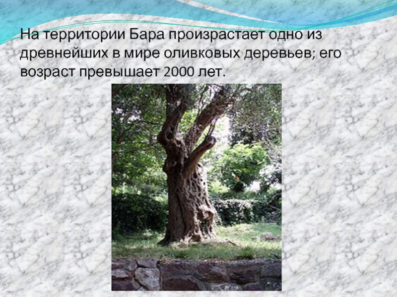 Слайд 15На территории Бара произрастает одно из древнейших в мире оливковых