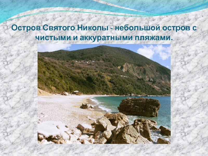 Слайд 22Остров Святого Николы - небольшой остров с чистыми и аккуратными