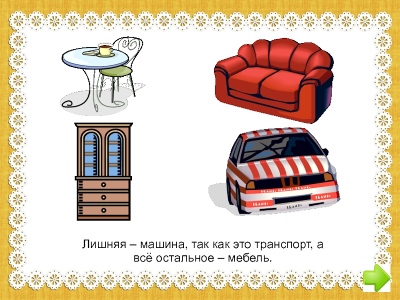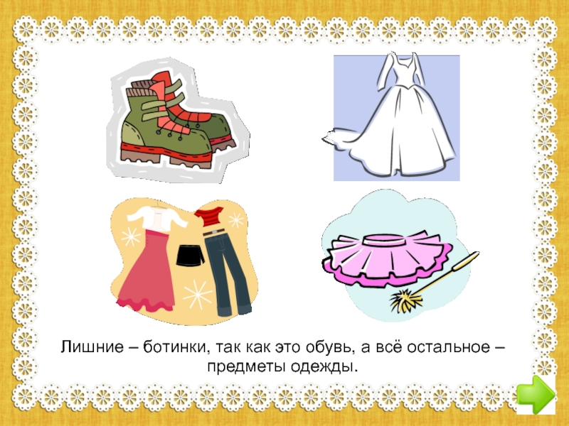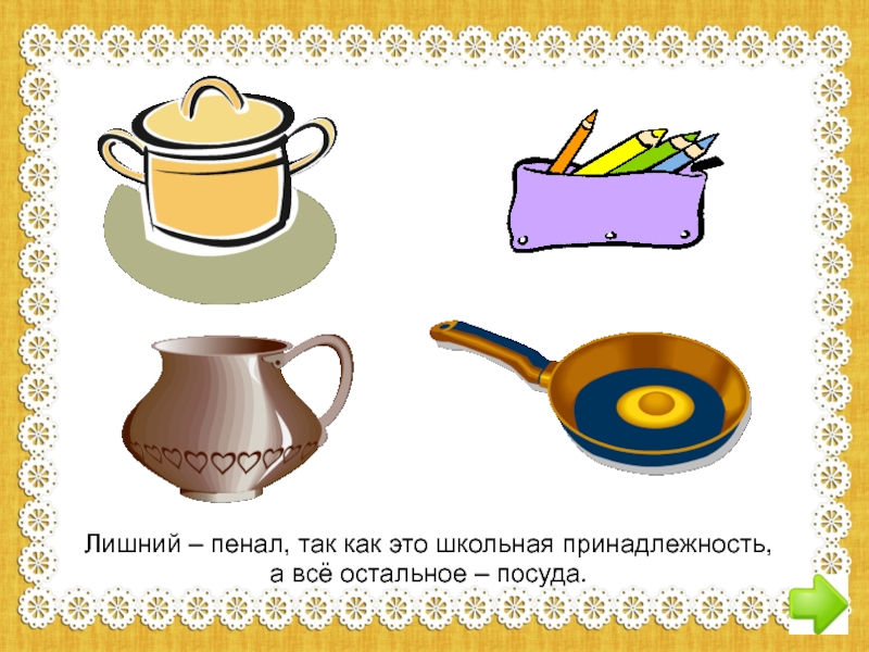 себя.При объяснении необходимо пользоваться обобщающими словами. Например, лишняя – корова, т.к. это домашнее животное, а все остальные животные – дикие.
