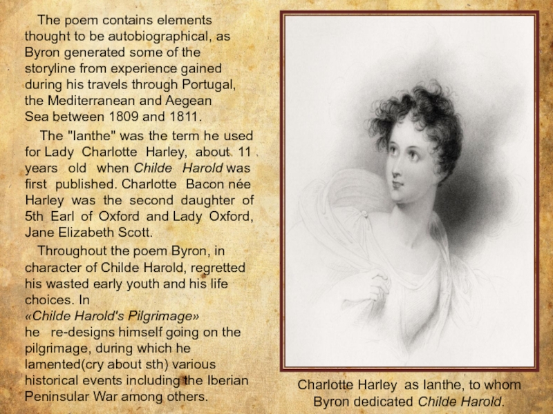 Charlotte Harley as Ianthe, to whom Byron dedicated Childe Harold.