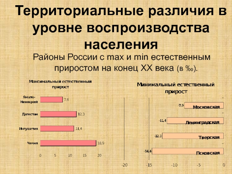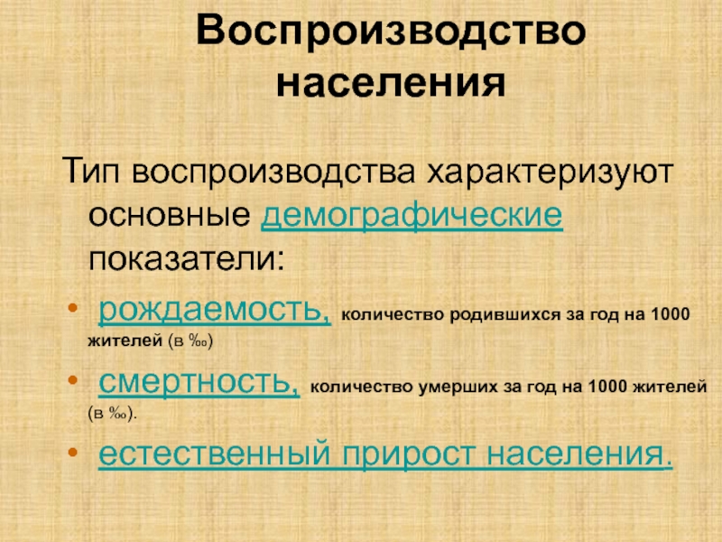 «демографический кризис»; «воспроизводство населения», «естественный прирост населения»;