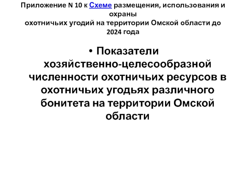 Слайд 3Приложение N 10 к Схеме размещения, использования и охраны охотничьих угодий на территории Омской