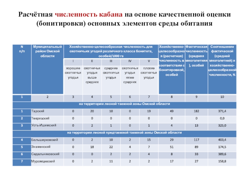 Слайд 19Расчётная численность кабана на основе качественной оценки (бонитировки) основных элементов
