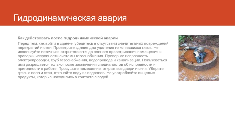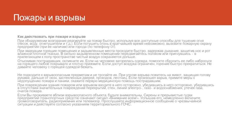 При повреждении здания пожаром или взрывом входите в него осторожно, убедившись в него осторожно, убедившись в отсутствии значительных повреждений перекрытий, стен, линий электро-, газо- и водоснабжения, утечек газа, очагов пожара.