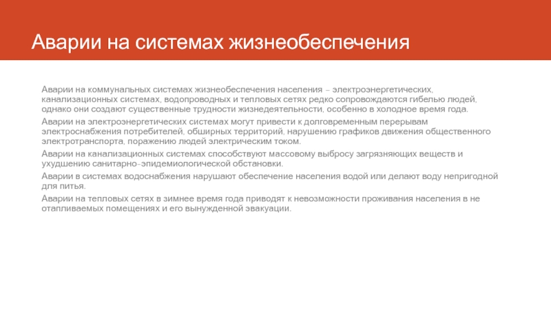 Аварии на коммунальных системах жизнеобеспечения населения –