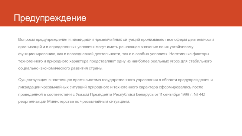 Слайд 4Предупреждение чрезвычайных ситуаций