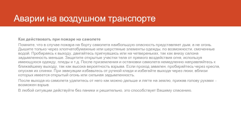 При эвакуации горящие помещения и задымленные места проходите быстро, задержав дыхание, защитив нос и рот влажной плотной тканью. В сильно задымленном помещении передвигайтесь ползком или пригнувшись – в прилегающем к полу пространстве чистый воздух сохраняется дольше.