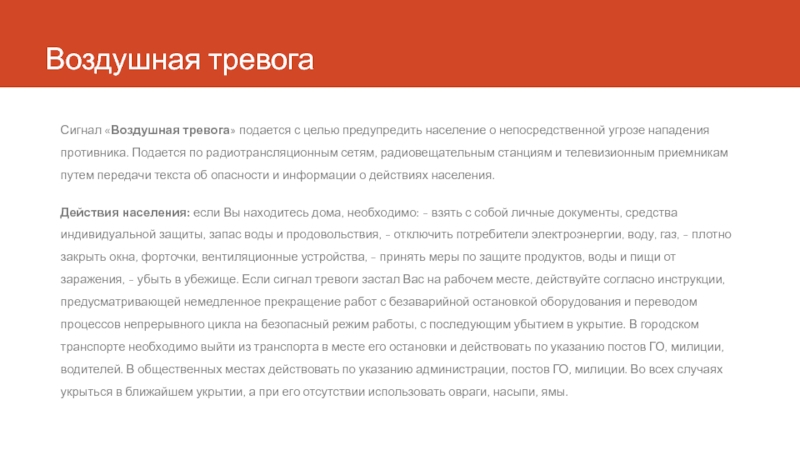 Сигнал «Воздушная тревога» подается с целью предупредить население о