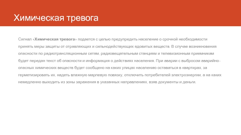 Сигнал «Химическая тревога» подается с целью предупредить население о