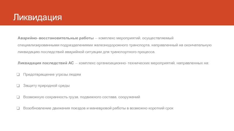 направленный на окончательную ликвидацию последствий аварийной ситуации для транспортного процесса.